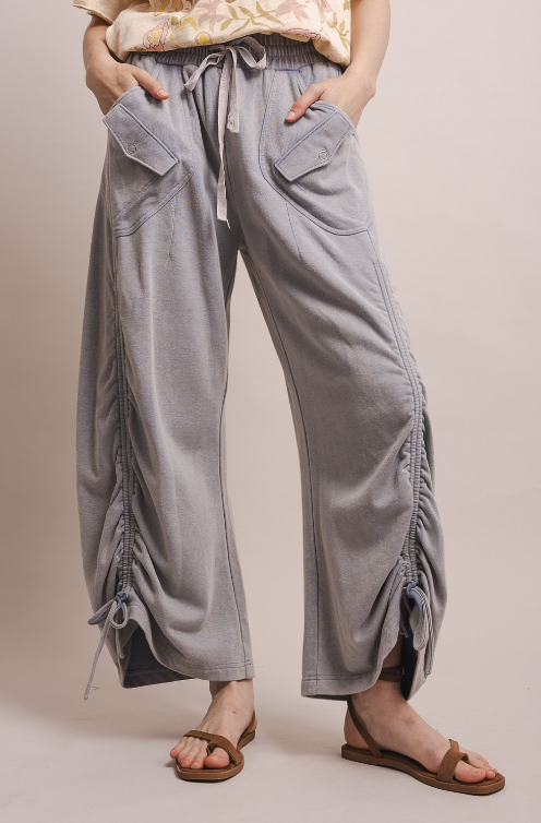 Cozy vibes meet effortless style with these mineral-washed french terry pants. Featuring practical snap-button pockets, a comfortable elastic waistband, and an adjustable ruched front that lets you customize your fit, they're perfect for days when comfort is non-negotiable.