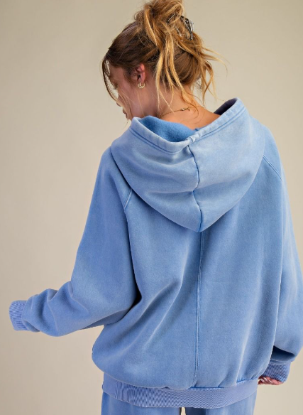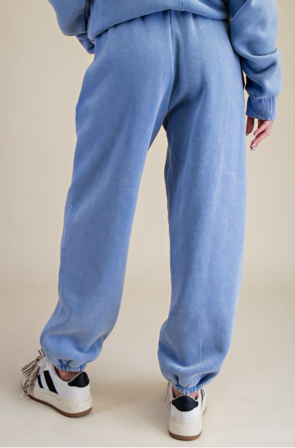 Mineral washed lounge set with fun graphic detail. The pants have an elastic waistband and ankles, side pockets and the hoodie has an adjustable drawstring hood, both designed in a relaxed fit