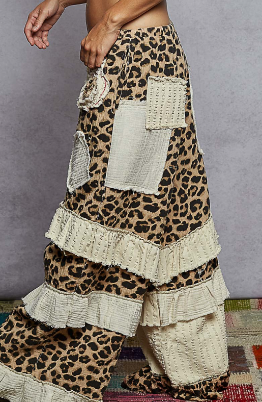 Step up your style with these statement-making pants, designed in a relaxed fit for effortless comfort. The wide-leg silhouette brings modern ease, while the printed woven fabric adds a bold, eye-catching touch. Thoughtfully detailed with textured twill contrast and a soft ruffle accent, these pants strike the perfect balance between playful and polished. Ideal for dressing up or down, they’re a standout addition to any wardrobe.