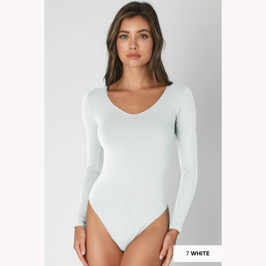 Soft jersey V-neck bodysuit made to contour and move with your body