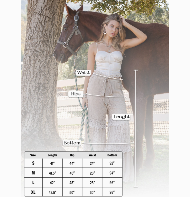 Tiered lace and cotton voile for a wide-leg silhouette with maximum flow and volume. Designed with an easy Elastic-waist boho skirt with an overdyed vintage finish for dreamy movement and easy everyday comfort.