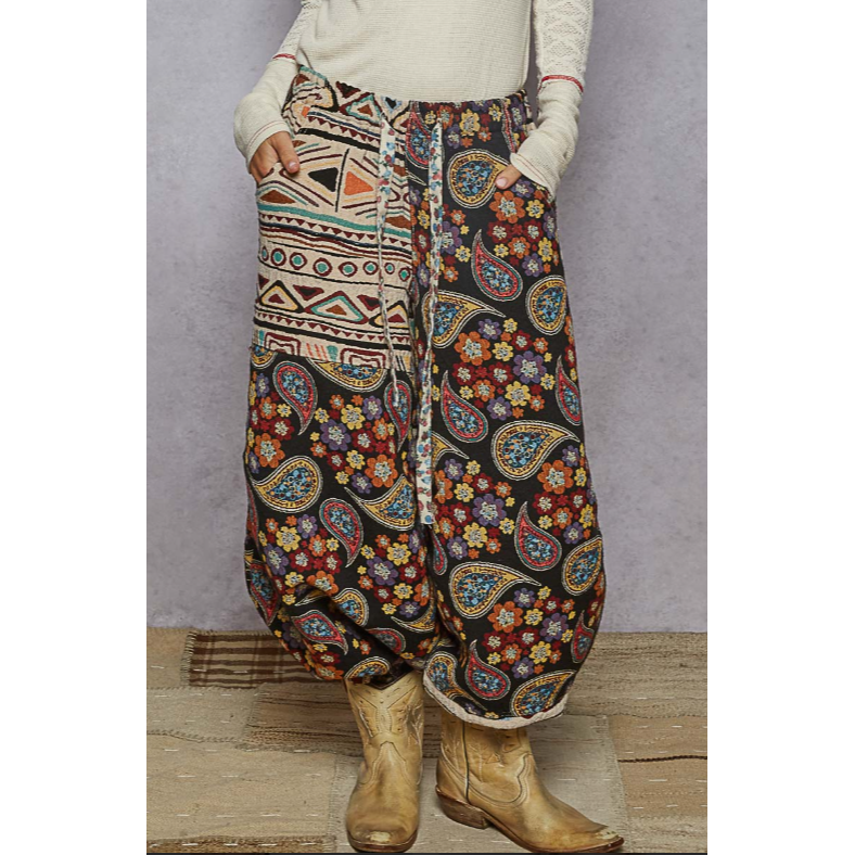 Relaxed fit jacquard pants with balloon hem and elastic waistband