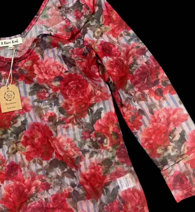 Stripes N Roses Mesh Top
